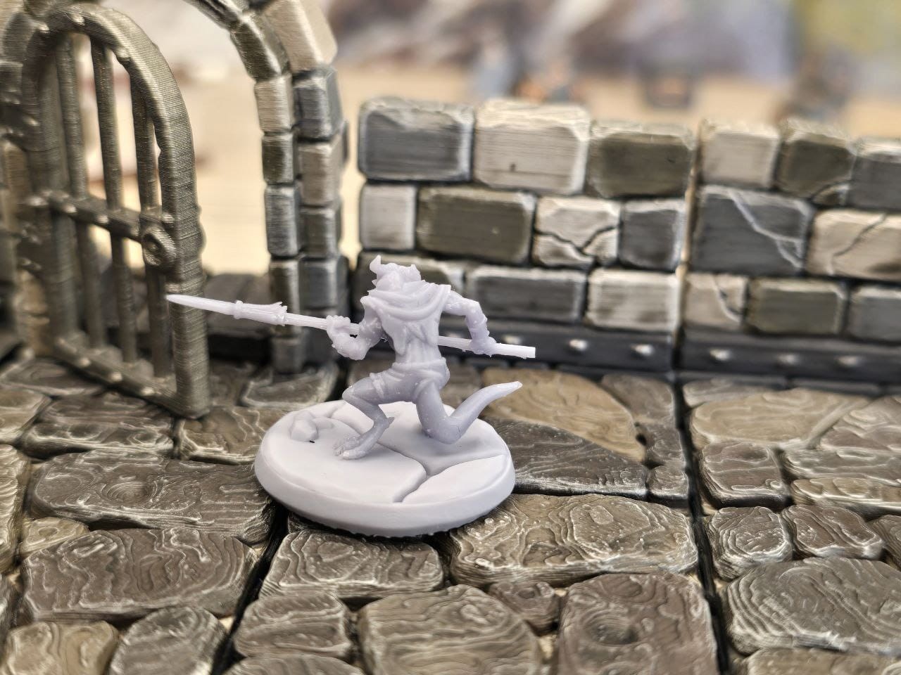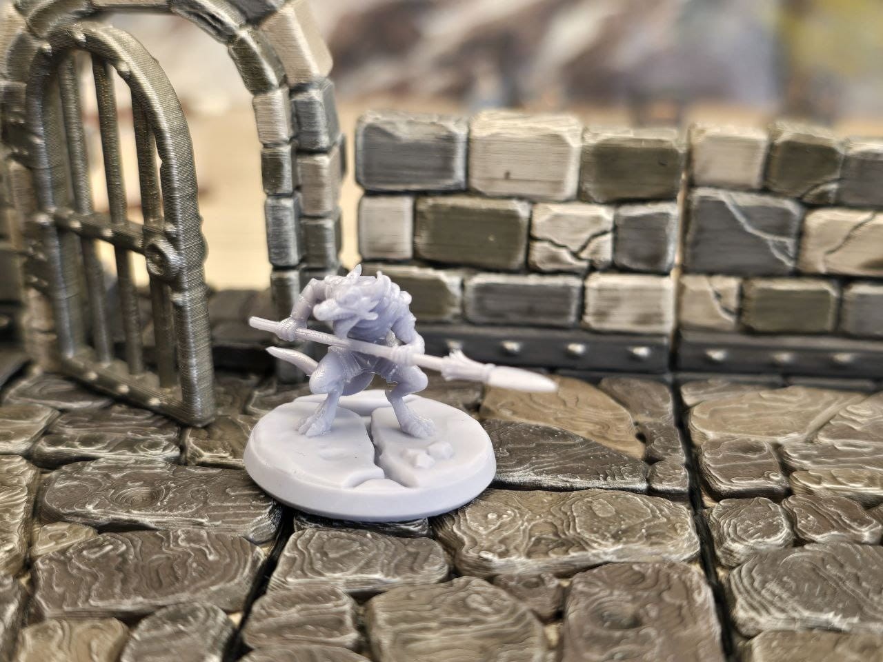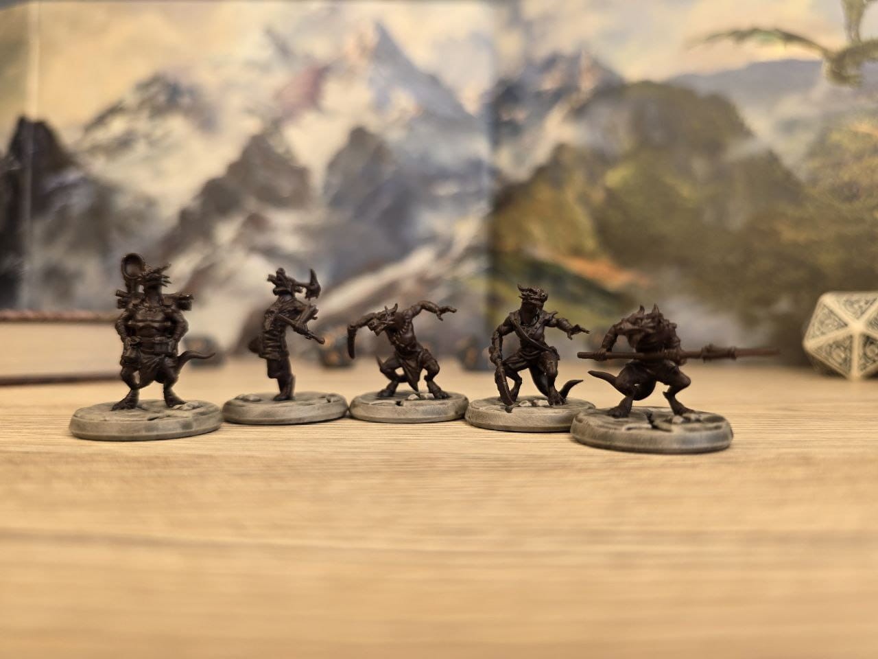 • kobold łowca: przyczajony, z włócznią w łapach, wyczekujący na zdobycz (2,2 cm wysokości)