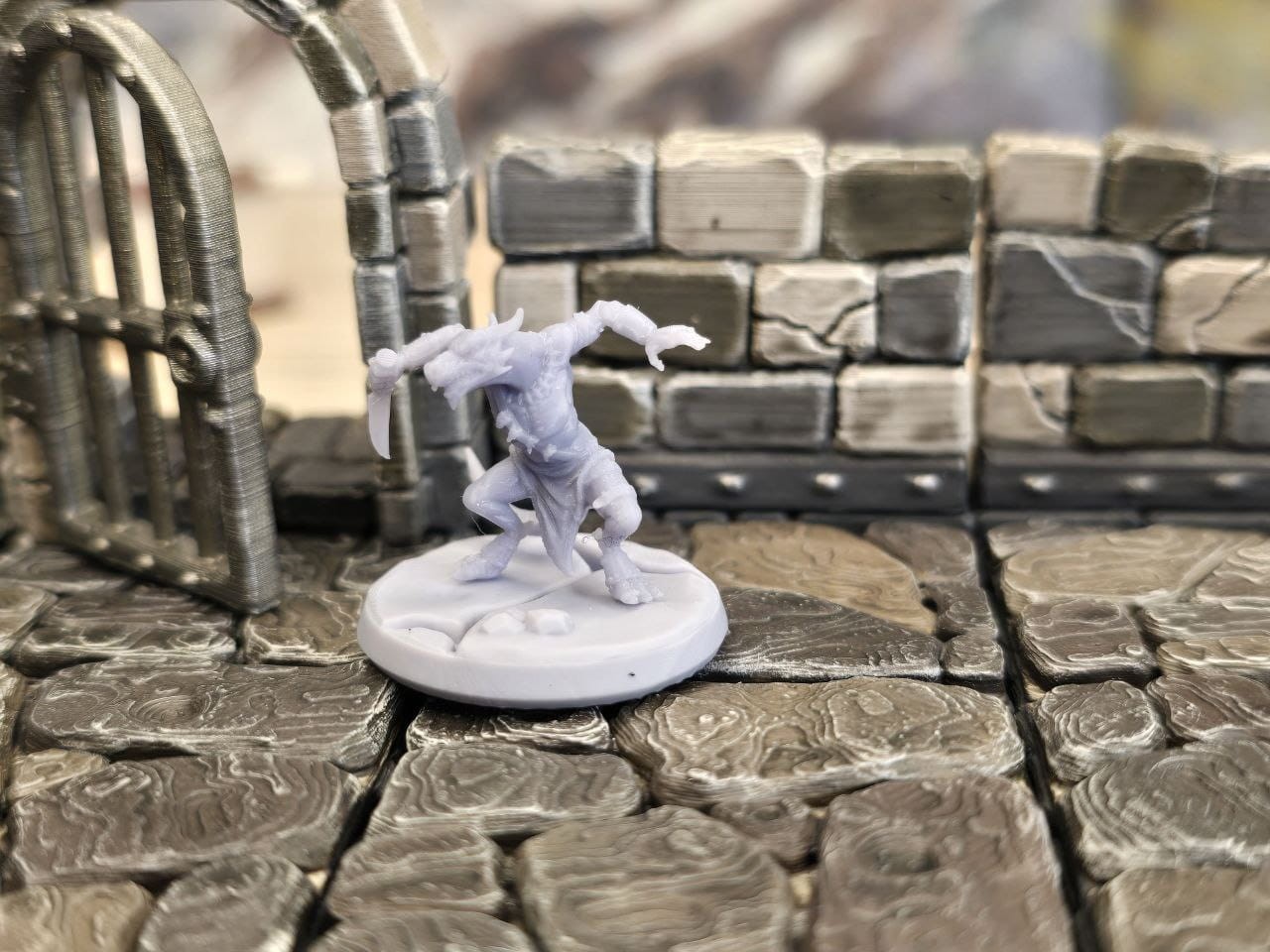 • kobold łotrzyk: pochylony, ze sztyletem w łapie, skradający się do cichego ataku (2,3 cm wysokości)
