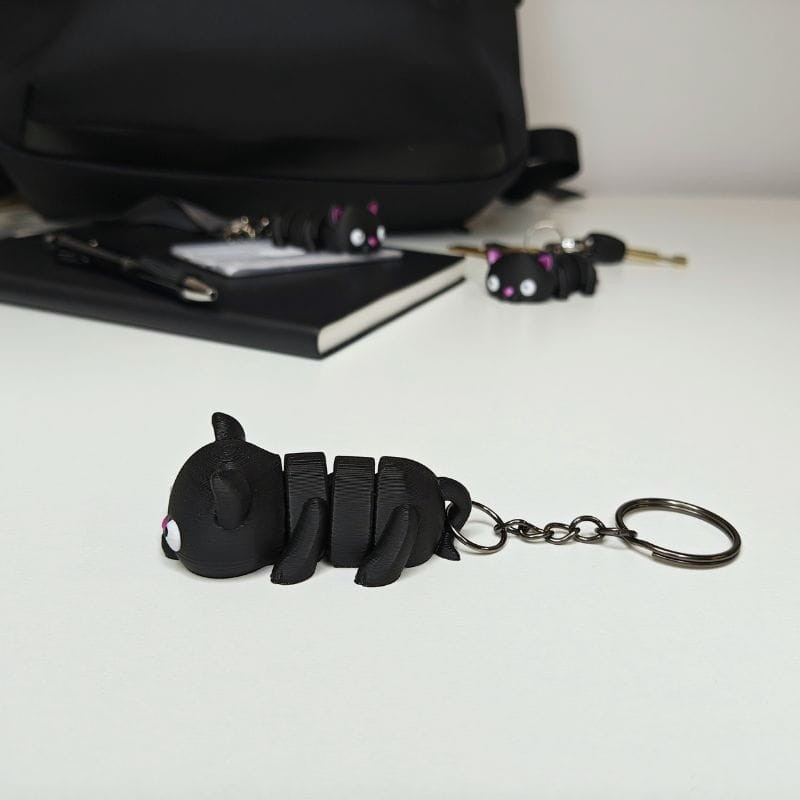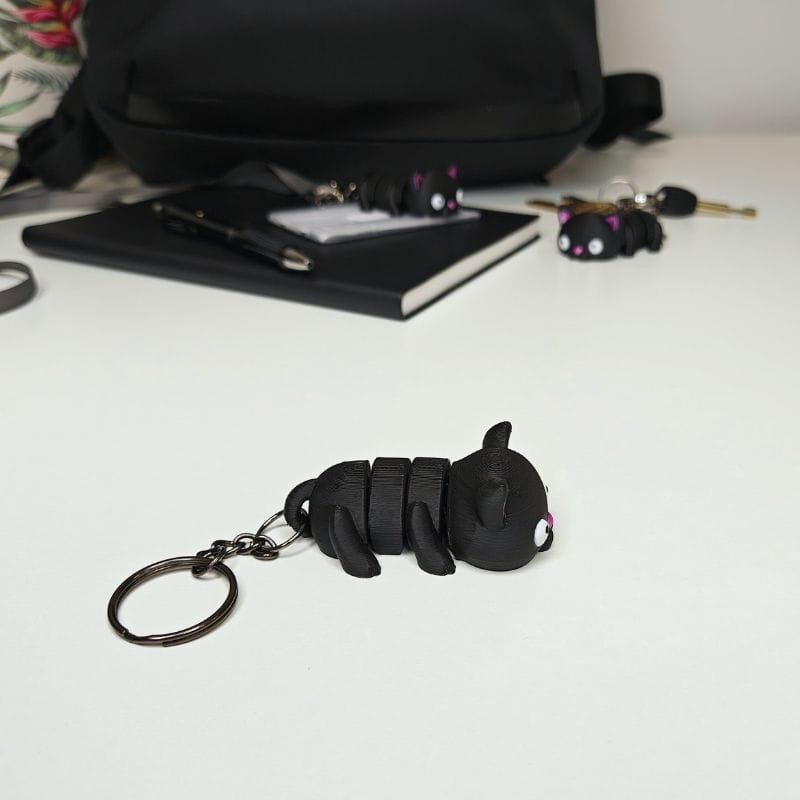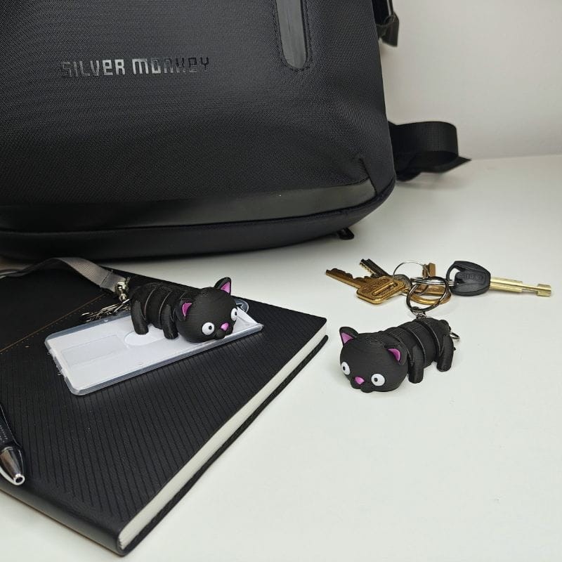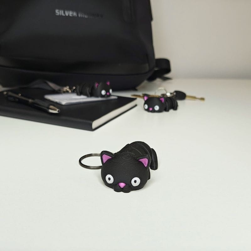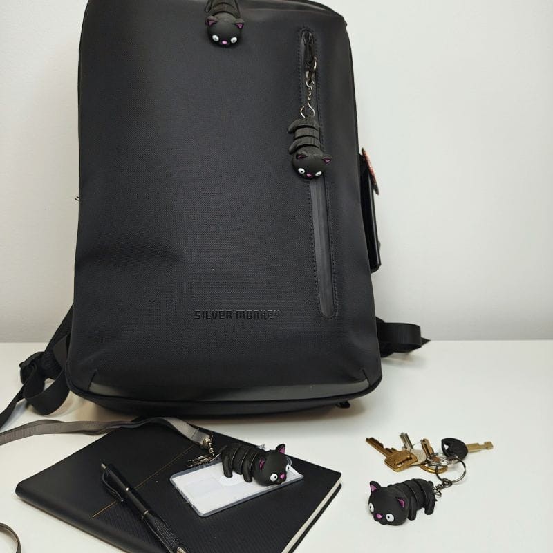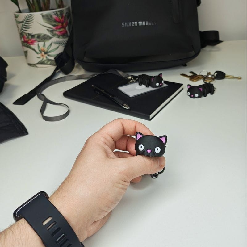 - Uroczy design: Kot zachwyca swoim urokiem – jego minimalistyczna, a zarazem elegancka forma pasuje zarówno do kluczy, jak i torby czy plecaka.