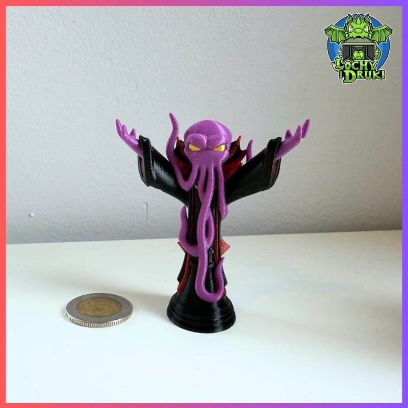 Fioletowy psychiczny predator prosto z kart Dungeons & Dragons. Łupieżca Umysłów w czterokolorowym druku FDM – Spectrum i Rosa3D – z wijącymi się mackami, rozpostartymi ramionami i żółtymi oczami, które świecą jak ostrzeżenie. Drukowany niskoseryjnie w Łodzi. Licencja komercyjna SuperPrints.