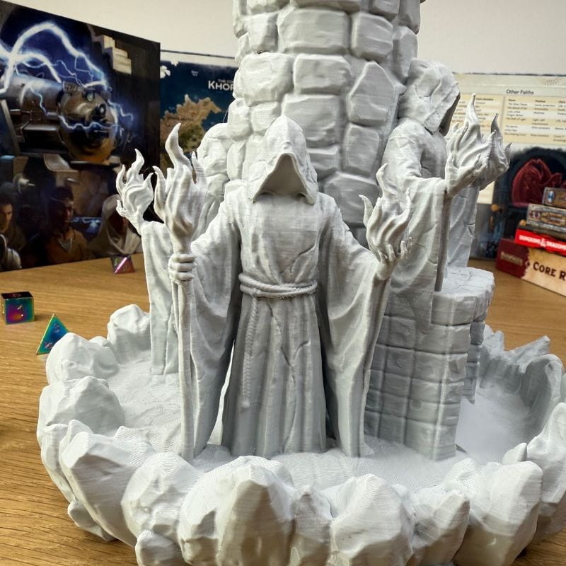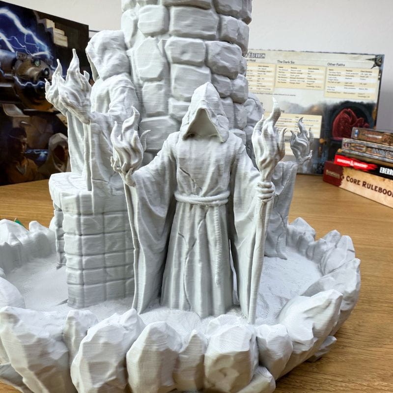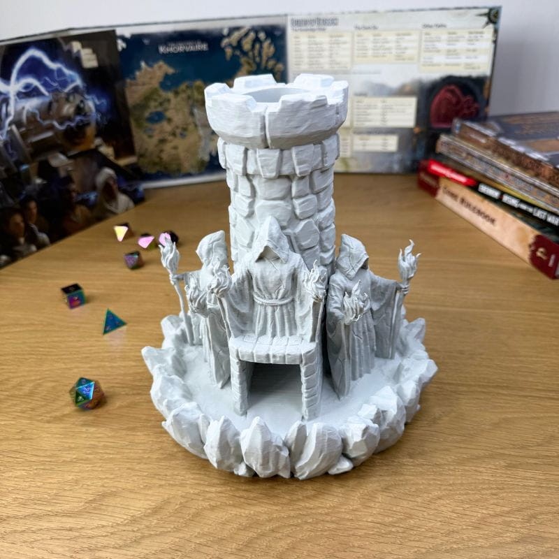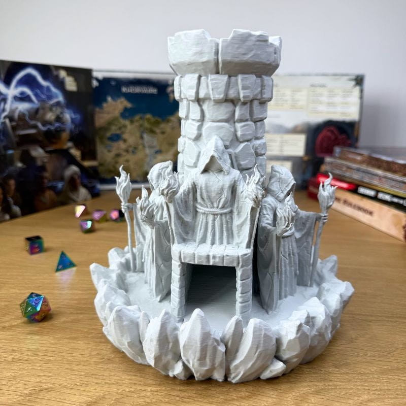 Przedstawiamy Wieżę Mrocznych Magów – profesjonalny i niezwykle klimatyczny dice tower, który sprawi, że każdy rzut będzie epickim wydarzeniem. To nie tylko ozdoba, ale potężne narzędzie, które rozwiązuje największe bolączki każdej sesji RPG czy weekendowej posiadówki z planszówkami.