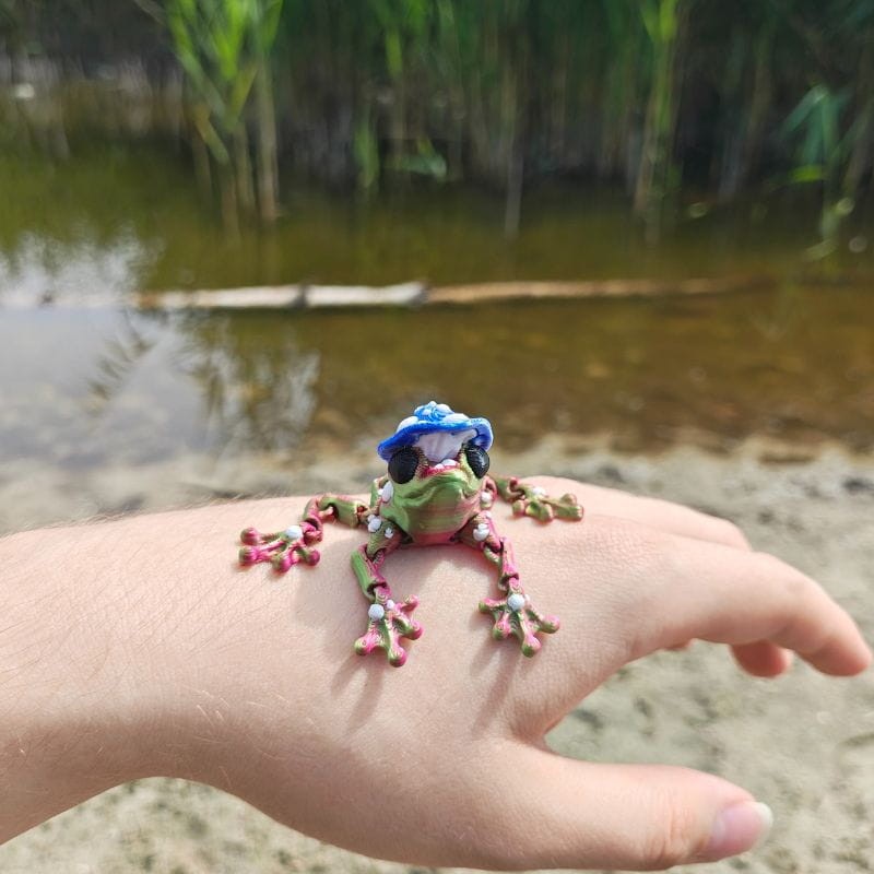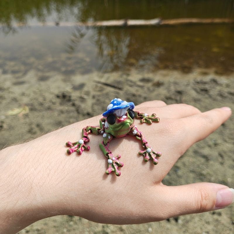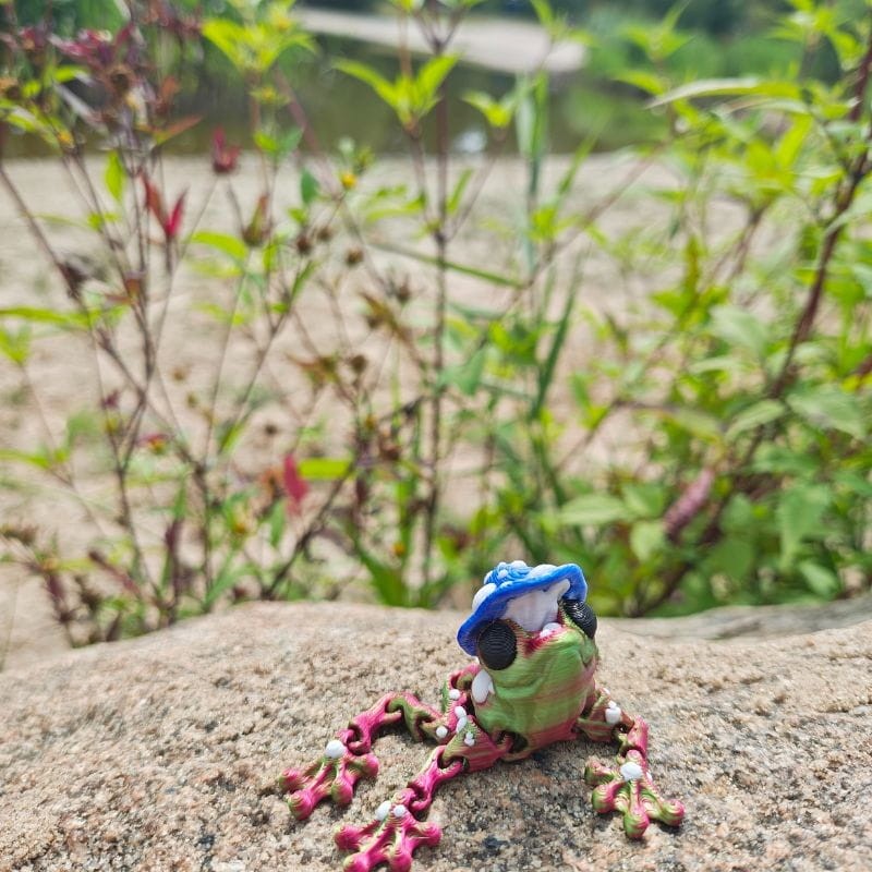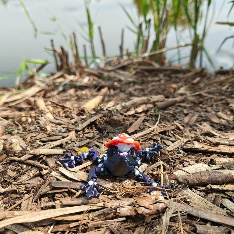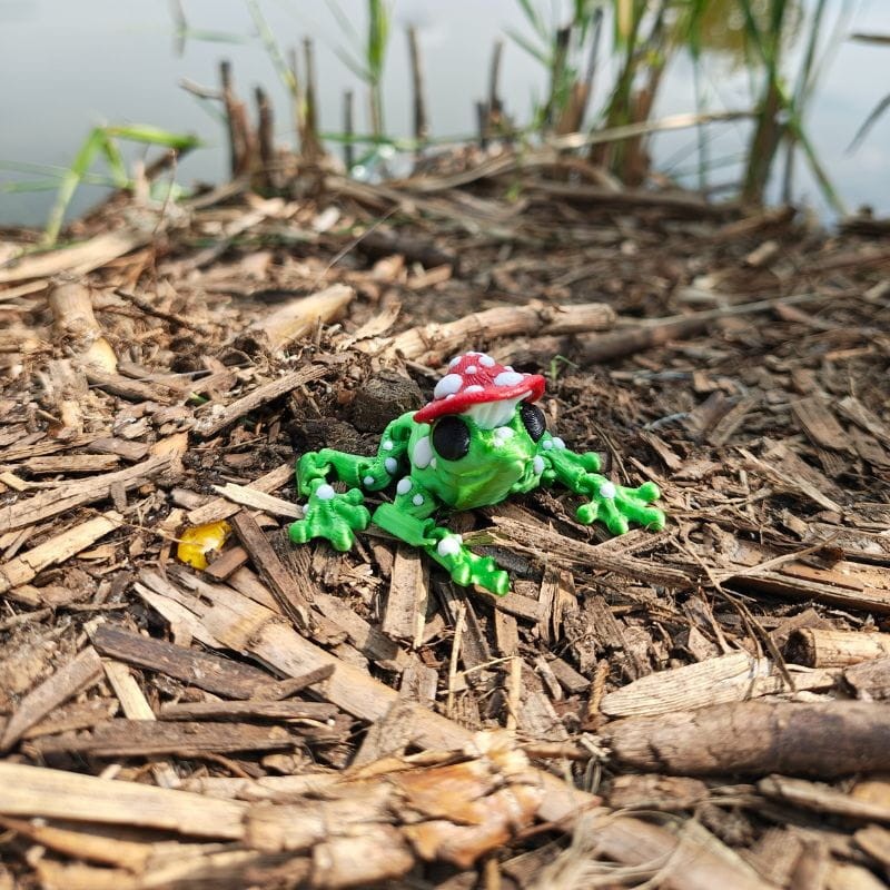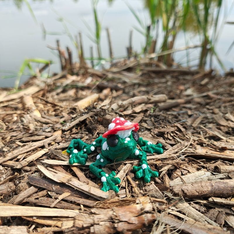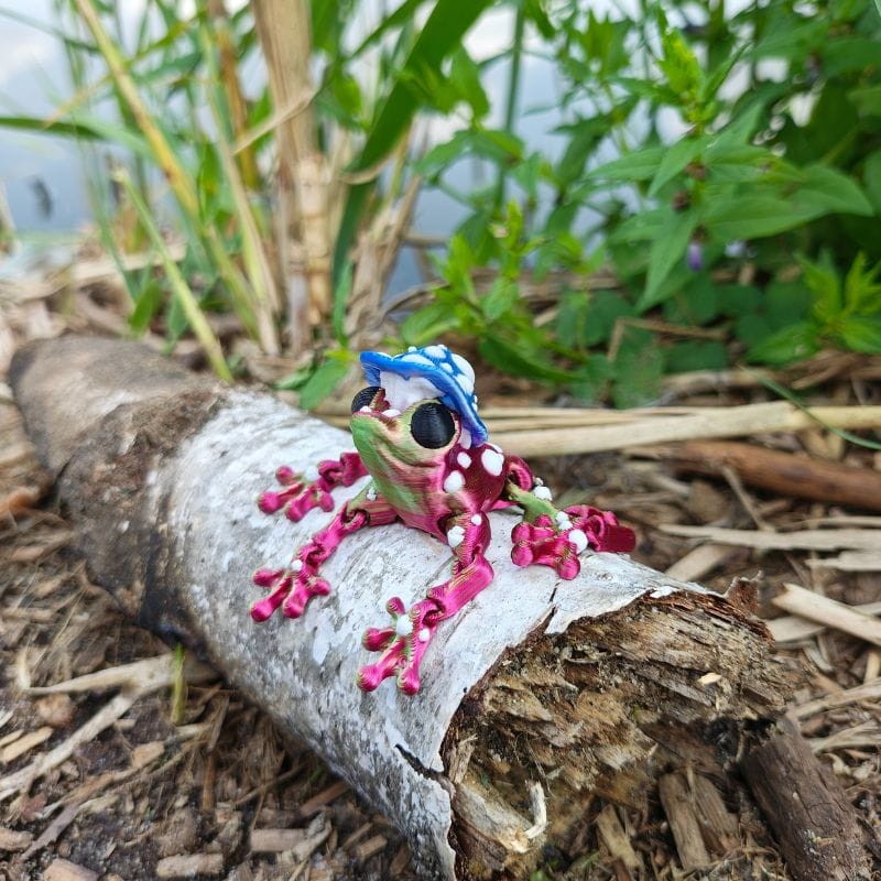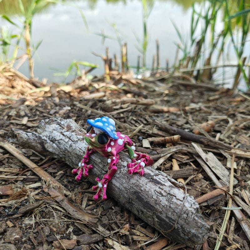 Żabka-Podróżnik w grzybowym kapeluszu – figurka 3D prosto z leśnej polany. Limitowana edycja, 6 kolorów, ręcznie tworzona w Łodzi z najlepszych polskich materiałów.